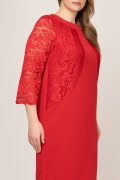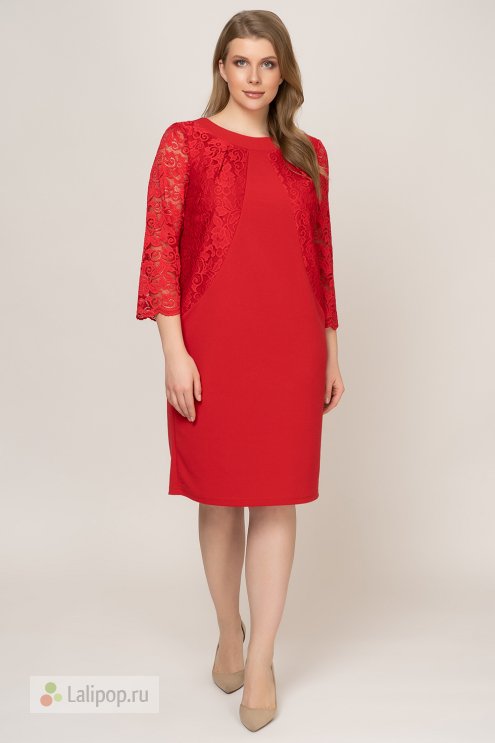 Платье из плотного трикотажа с гипюром прямого кроя, длина миди.
