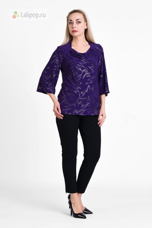Элегантная нарядная блуза с вырезом горловины водопад, 3/4 рукав длинной 45см.