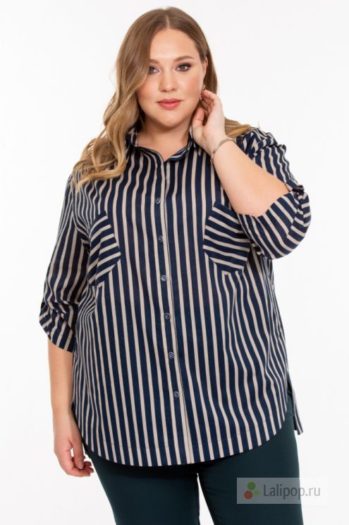 Блуза выполнена из тонкого хлопка. Незаменимая вещь в летнем гардеробе. Рукав спущенный 3/4 с патой. Накладные карманы, а на спинке кокетка. Полочка закругленная, линия низа спинки прямая, их соединение оформлено декоративными пуговицами.
