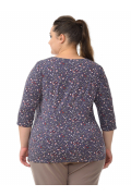 Базовая блуза из принтованного трикотажа "масло". Силуэт полуприлегающий. Вырез горловины округлый. Рукав 3/4.