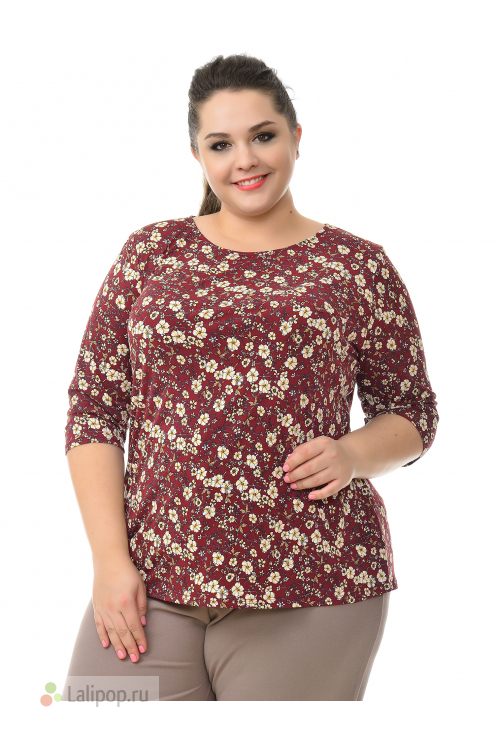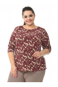 Базовая блуза из принтованного трикотажа "масло". Силуэт полуприлегающий. Вырез горловины округлый. Рукав 3/4.