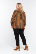 Вискозная рубашка в полоску. Свободная блуза прямого силуэта со спущенной линией плеча. Застежка на пуговицы, скрытые планкой. Рукава с объемными складками у манжет подчеркивают изящность запястья. Спинка удлиненная, со складкой для свободы движений. Рубашка выполнена из вискозного штапеля - легкого, дышащего, приятного к телу. Графичный принт красиво играет в движении, а цвет идеально идеально дополнит осеннюю палитру гардероба.