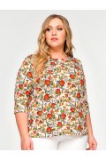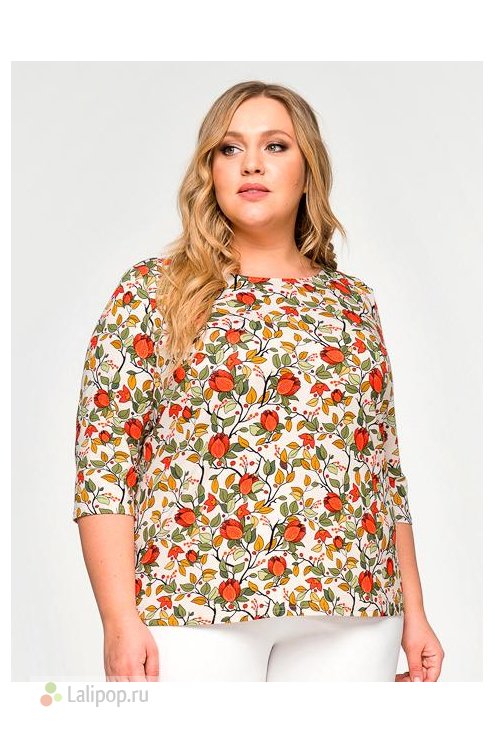 Базовая блуза из принтованной вискозы. Силуэт прилегающий. Вырез горловины округлый. Рукав 3/4.