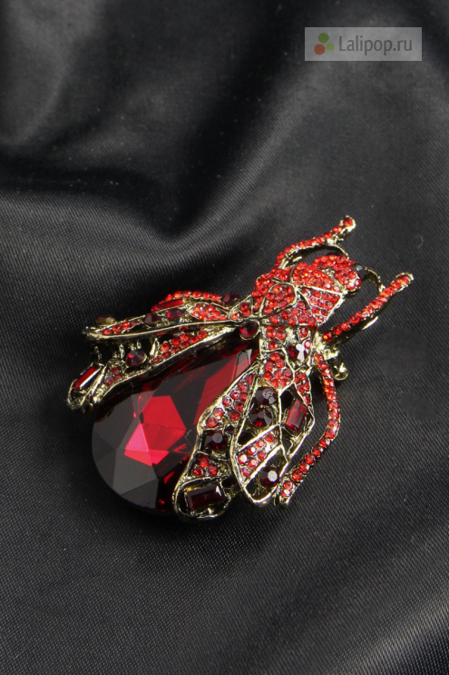Брошь в виде жука бронзового цвета, украшенного стразами.