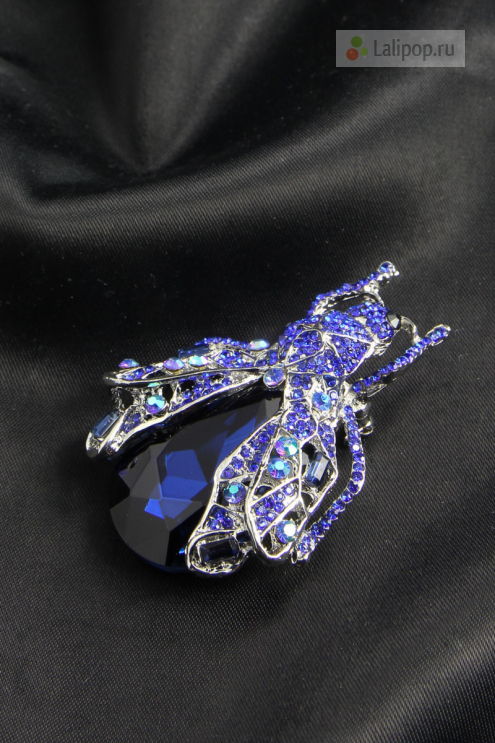 Брошь в виде жука серебряного цвета, украшенного стразами.