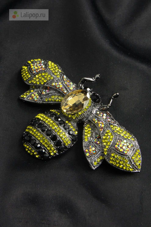 Брошь в виде мухи серебряного цвета, украшенного стразами.