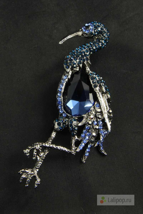 Брошь в виде цапли серебряного цвета, украшенного стразами.