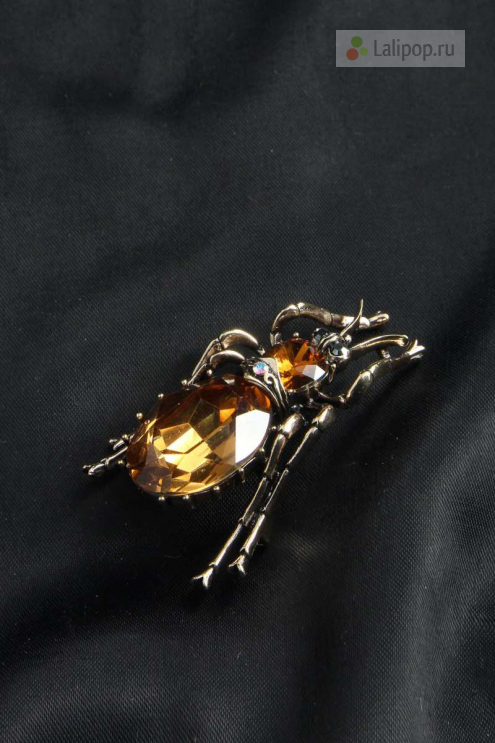 Брошь в виде жука золотого цвета, украшенного стразами.