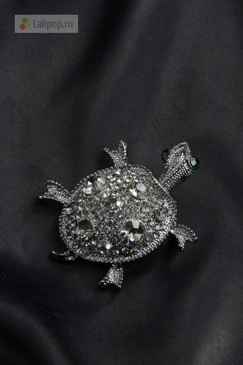 Брошь в виде черепахи серебряного цвета, украшенного стразами.