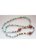 Эффектный браслет с авторским дизайном! Браслет выполнен из самоцветов, бисера, дерева и металла. Деревянные элементы с растительным узором, граненые бусины из металла разного диаметра и мелкие натуральные камни делают украшение объемным и неповторимым. С помощью этого браслета любой наряд станет праздничным и ярким, а его обладательница - уверенной в своей привлекательности. Подарите стильный аксессуар себе или своим близким!