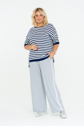 Ультра-модные брюки в спортивном стиле. Широкий крой брюк и интересная фактура ткани делают образ актуальным и изысканным, а в движении смотрятся особенно интересно. Пояс на круговой резинке, регулируется шнурком. По бокам действующие карманы и двойные белые лампасы. Легкий эластичный трикотаж станет комфортным выбором на каждый день для своей обладательницы.