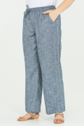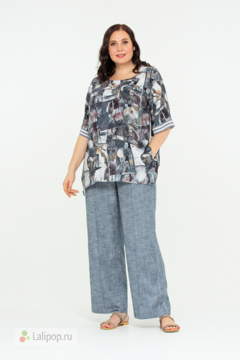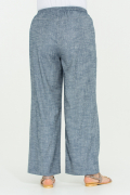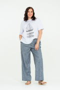 Премиальные брюки-палаццо, выполнены из вискозно-льняной ткани с оригинальной фактурой и шелковистым блеском. Вертикальные лампасы и стрелочки задают свободному крою брюк изящную лаконичную форму. Пояс на резинке, со шнурком и имитацией гульфика. По спинке расположена кокетка для безупречной посадки на талии. По бокам действующие карманы. Все конструктивные линии, а также лампасы и стрелочки оформлены белой отделочной строчкой. Легкая натуральная ткань красиво драпируется и переливается в движении, хорошо дышит и очень приятна к телу.