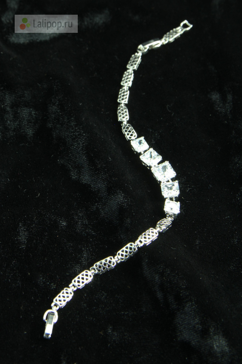 Очаровательный браслет, выполненный из металла цвета серебра, украшенный фианитами прозрачного цвета.