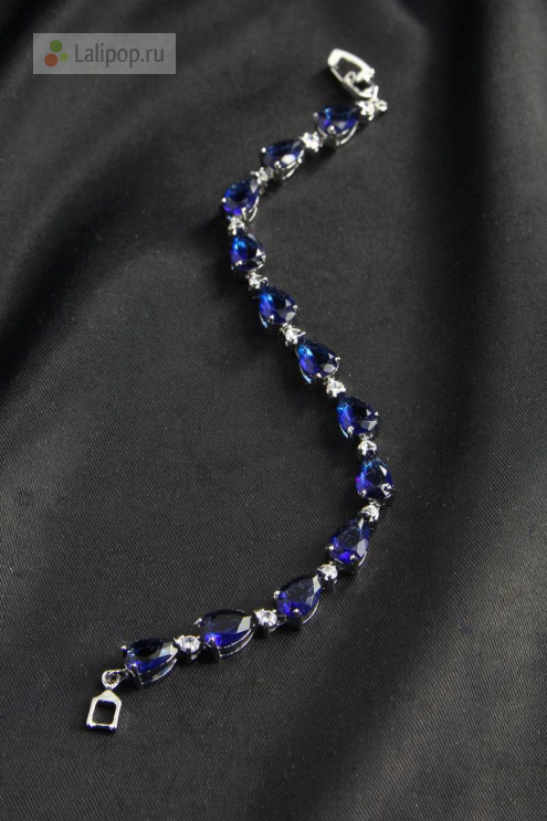 Изящный браслет, выполненный из металла цвета серебра. Браслет украшен фианитами фиолетового цвета.