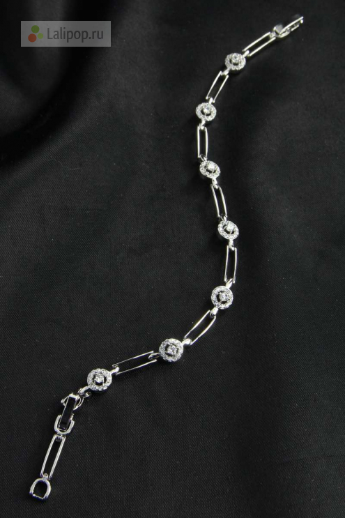 Изящный браслет, выполненный из металла цвета серебра. Браслет украшен фианитами прозрачного