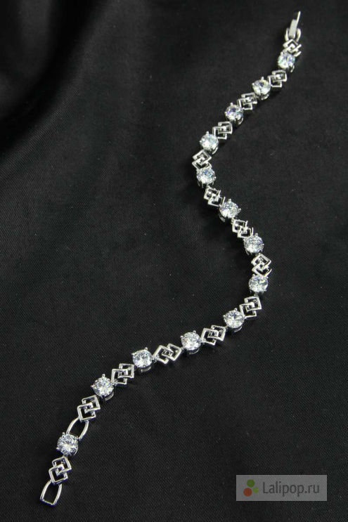 Изящный браслет, выполненный из металла цвета серебра. Браслет украшен фианитами прозрачного