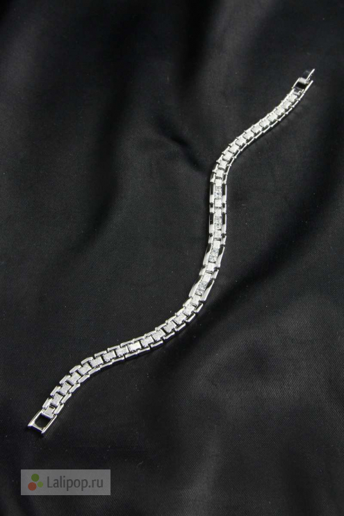 Изящный браслет, выполненный из металла цвета серебра. Браслет украшен фианитами прозрачного