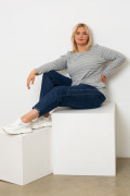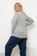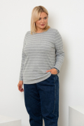 Базовый джемпер в полоску. Выполнен из легкого, мягкого поливискозного трикотажа с люрексом. Модель прямого силуэта. Округлая горловина, длинный отрезной рукав.