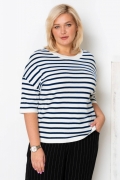 Джемпер-футболка в горизонтальную полоску черно-белого цвета выполнен из хлопоковой итальянской пряжи. Модель обладает широким рукавом, доходящим до локтя. Сам джемпер выполнен в стиле оверсайз и подходит любому типу фигуры. Классический горизонтальный принт, благодаря оптимальной ширине полоски, не полнит и также подойдет любому телосложению. Джемпер хорошо сочетается с практически любыми брюками, джинсами и юбками из летней коллекции.