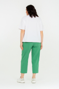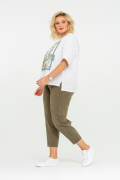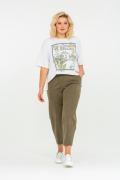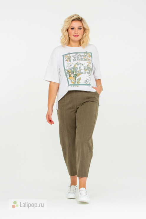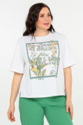 Стильная футболка с тропическим принтом. Трендовый крой "oversize", спущенная линия плеча, рукав длиной до локтя. В боковых швах небольшие разрезы, спинка удлиненная. Модель выполнена из эластичного хлопка. Растительный принт сочетается с графичной надписью: "Все дело в стиле"!
