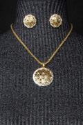 Длина цепочки 48 см + 6 см. Диаметр подвески 4 см, сережек 2,5 см.