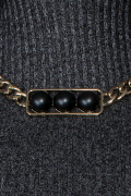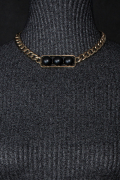 Металлическая цепь золотого цвета, вставка из матовых черных бусин.