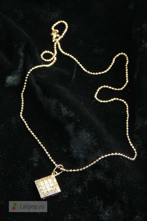 Великолепный подвес, выполненная из металла цвета золото. Кулон украшен фианитами прозрачного цвета.