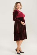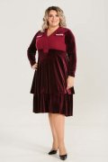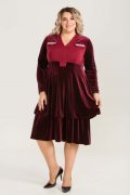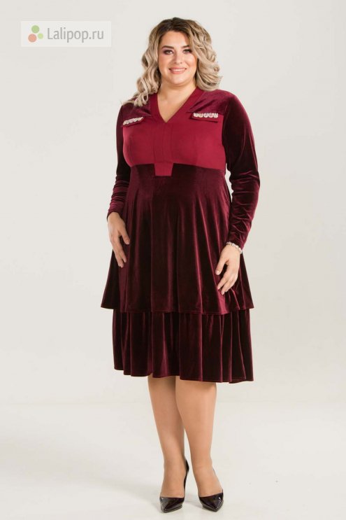 Интересное платье из бархата и ткани-компаньона полуприлегающего силуэта. Двухъярусная юбка создаст торжественный образ, смоделирует фигуру. Часть груди и спины из ткани-компаньона. V-образный вырез горловины идеально подходит к данному образу. Воротник переходит в планку. Клапаны декорированы стразами. Модное платье со стразами завоюет популярность благодаря сходству с дорогими украшениями. Платье из бархата подчеркнет Вашу осведомленность в современных модных тенденциях. Платье станет прекрасным дополнением к Вашему эффектному гардеробу.