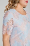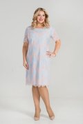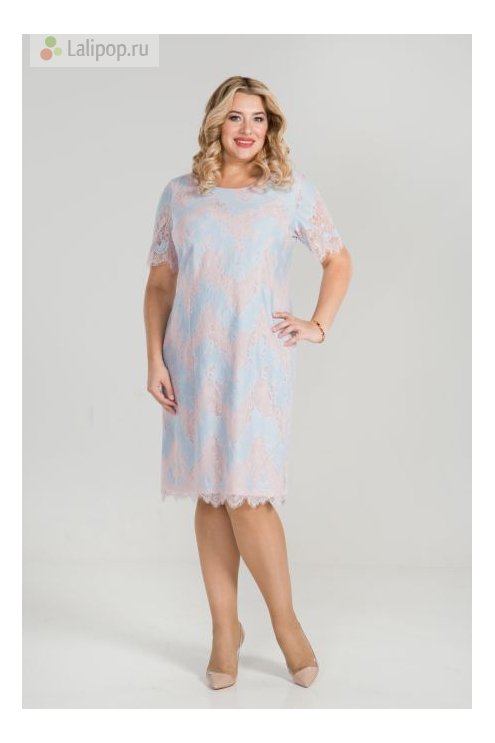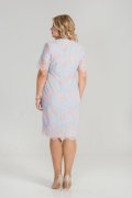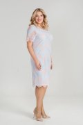 Платье полуприлегающего силуэта из кружевного полотна с фестонами. Модель на трикотажном подкладе. Прилегание по фигуре за счет вытачек. В боковом шве тесьма-молния. Горловина округлой формы обработана внутренней обтачкой. Спинка со швом по центру, оканчивающимся шлицей. Рукава втачные укороченные.
