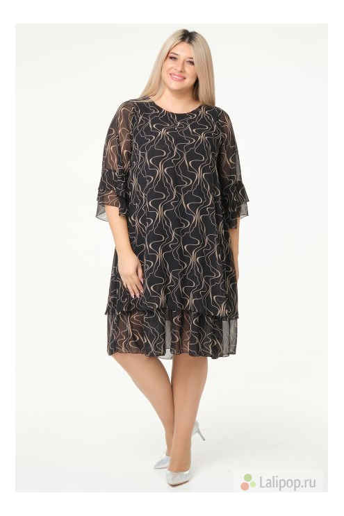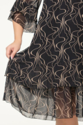 Женственное платье А-силуэта выполнено из легкого шифонового полотна с нежным принтом. Круглая горловина обработана подкладом. Расклешенные втачные рукава длиной за локоть с эффектным двойным воланом. Модель на однотонном трикотажном подкладе, обработанным по низу воланом из основной ткани, выступающим из под верхнего платья, создавая эффект двойной юбки.