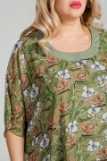 Горловина обработана внешней обтачкой из однотонной ткани.