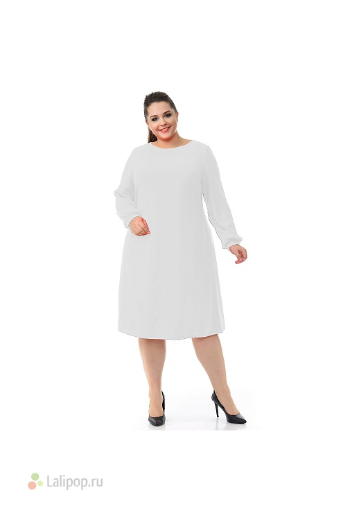 Платье А-силуэта из крепа с эластаном. Вырез горловины округлый. Рукав длинный, по низу легкая сборка, на манжете.