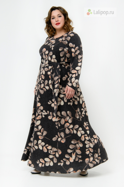 Платье "ЛаТэ" 216142 (листья на темно-сером)