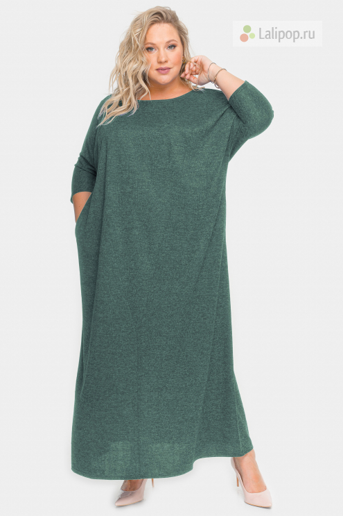 Платье длинное с цельнокроеным рукавом из зеленого меланжа * (Изумрудный)