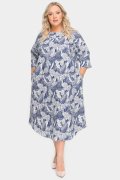 Платье из льна свободного силуэта. Вырез горловины округлый. В боковых швах карманы. Линия плеча спущена. Рукав закрывает локоть.