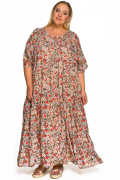 Платье из штапеля, ярусы, принт "хаки цветочный" * (Мультиколор)