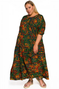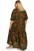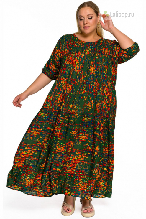 Платье из штапеля, ярусы, принт "зеленая абстракция" * (Мультиколор)