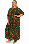 Платье длинное из штапеля свободного силуэта. Отрезное по линии груди, нижняя часть платья присборена. Рукав закрывает локоть, низ рукава на резинке.Вырез горловины округлый.