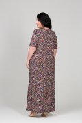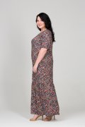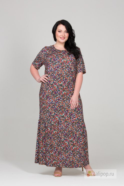 Трикотажное платье макси, выполнено из вискозы с рисунком "мелкий цветочек". Платье полуприлегающего силуэта с круглым вырезом горловины с коротким втачным рукавом, с воланом по низу платья. Модель женственная и комфортная идеально подойдет для каждодневной носки.