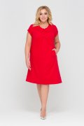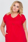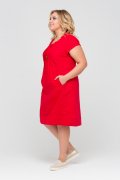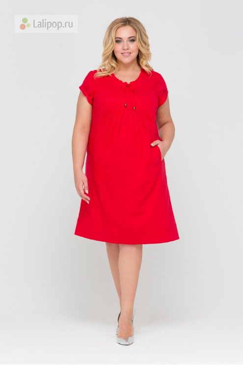 Летнее льняное платье выполнено в стиле "casual". Платье А-образного силуэта и свободного кроя. Округлый вырез горловины на кулиске, в рельефных швах карманы. На лифе заложены встречные складки, застежка молния сбоку. Длина платья 100 см.