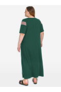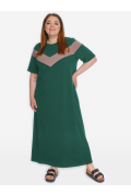 Платье с отделкой по кокетке и рукавам, зеленое, отделка кофе (Изумрудный)