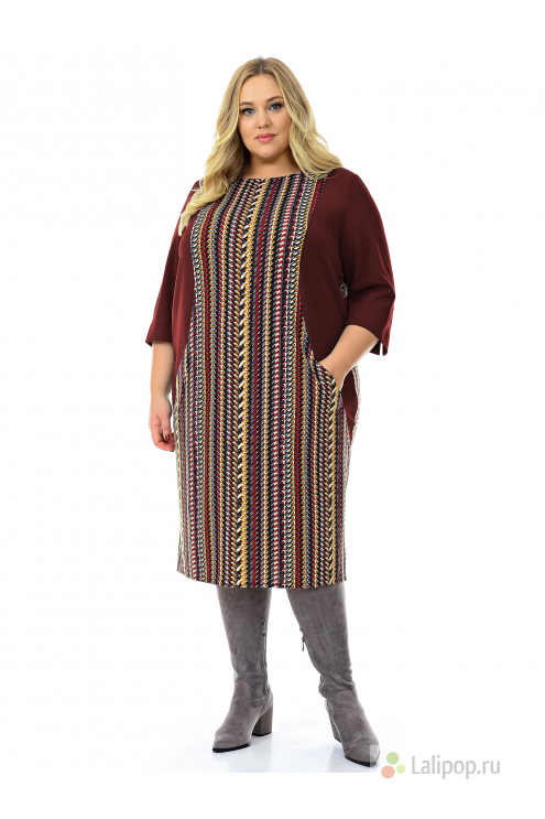 Платье "ЛаТэ" 204060 (Джерси орнамент, отделка и рукава бордовые)