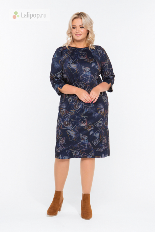 Платье с абстрактным принтом. Платье прямого силуэта. Рельефы на груди гарантируют идеальную посадку на любую фигуру. Рукав-реглан длиной 3/4, с небольшими разрезами. Округлый вырез горловины декорирован искусственной кожей. Карманы с застежкой на пуговицу. На спинке по низу шлица для удобства движений. Платье выполнено из поливискозного трикотажа, мягкого и эластичного, и станет комфортным выбором на каждый день.