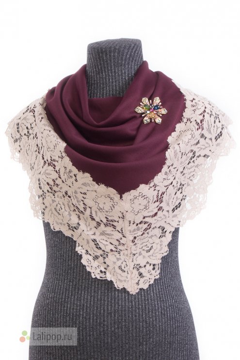 Закрепить платок можно подходящей по цвету брошью, выбранной в разделе аксессуары.