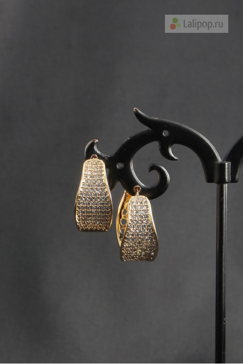 Восхитительные женственные серьги выполнены из металла золотого цвета и украшены цирконами. Будьте неотразимы и сделайте Ваш образ незабываемым!