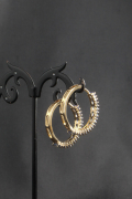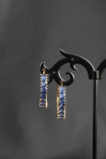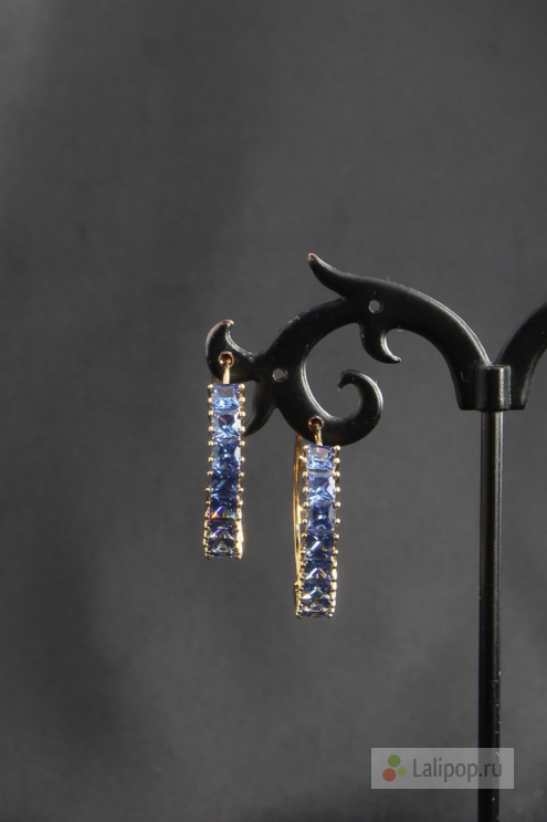 Крупные выразительные серьги - кольца с дорожкой из синих цирконов в оправе из металла золотого цвета.