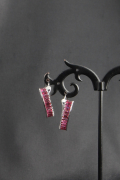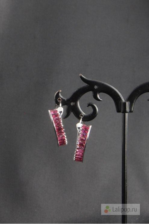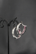 Крупные выразительные серьги - кольца с дорожкой из розовых цирконов в оправе из металла серебрянного цвета.