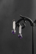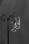 Великолепные серьги, выполненые из ювелирного сплава цвета серебра. Серьги украшены фианитами белого цвета и крупным цирконом фиолетового цвета.
