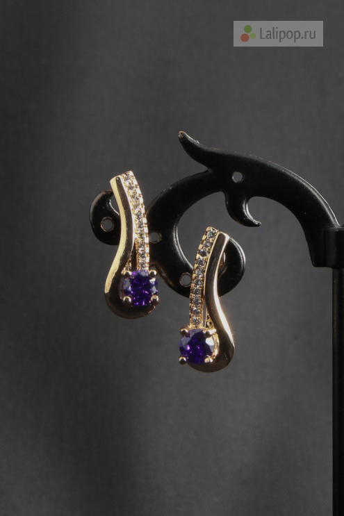 Великолепные серьги, выполненые из ювелирного сплава цвета золота. Серьги украшены фианитами фиолетового и прозрачного цвета.