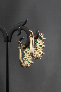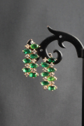 Великолепные серьги, выполненые из ювелирного сплава цвета золота. Серьги украшены фианитами зеленого и прозрачного цвета.